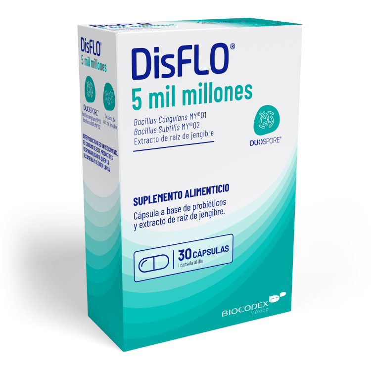 Diseñado para complementar tu ingesta de probióticos, DisFLO® es un suplemento alimenticio que presenta una fórmula única y científicamente respaldada, que combina dos tipos de probióticos formadores de esporas e ingredientes naturales.